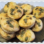 • Разложить тесто в формы под маффины. Сверху посыпать тыквенными семечками.