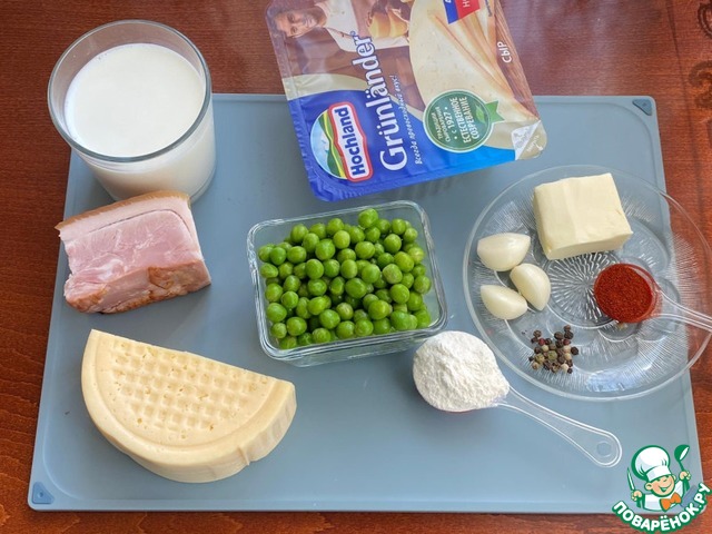 Теперь приготовим сырный соус. Для этого подготовьте все необходимые ингредиенты.