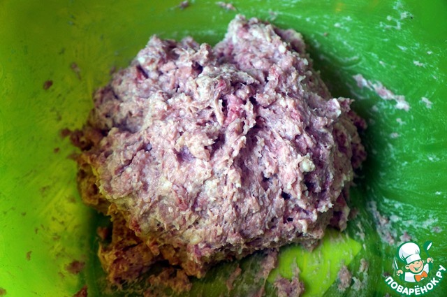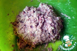 Смешать с фаршем, посолить, поперчить, хорошенько перемешать.