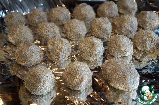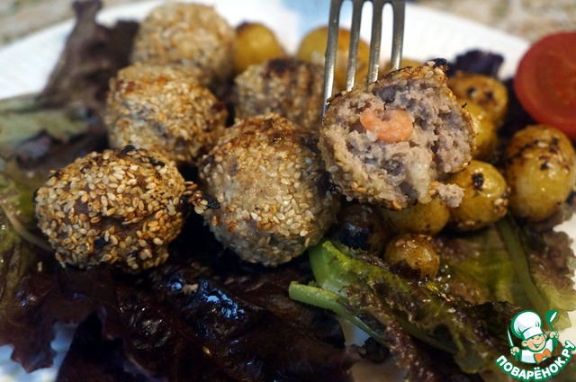 Ингредиенты для «Мясные шарики в кунжуте»:
