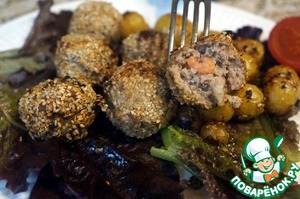 Готовые шарики выложить на листья салата, подать с овощами или без гарнира.