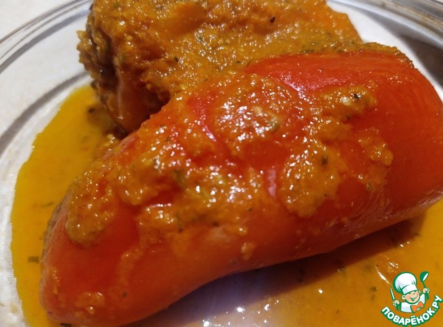 Рецепт «Фаршированный перец в сырно-овощном соусе»: