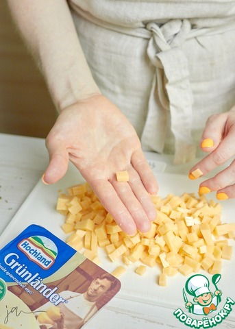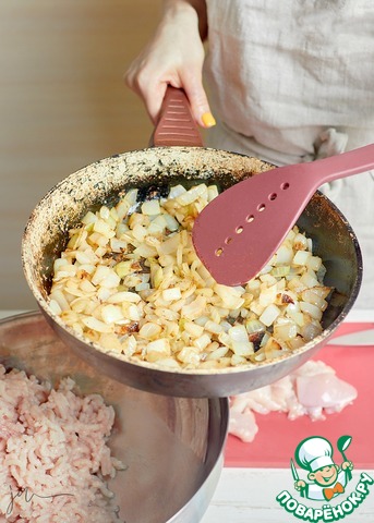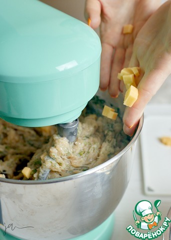 Высыпать сыр в фарш и еще минуты три вмешивать, чтобы равномерно разошелся.