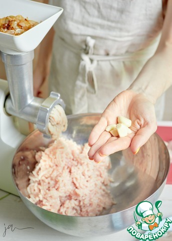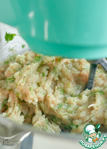 Вымесить фарш в чаше миксера 10 минут на средней скорости. Или руками минут 15-20.
