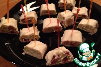 С одной стороны загибаем лаваш, чтобы в итоге получился ковертик