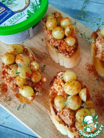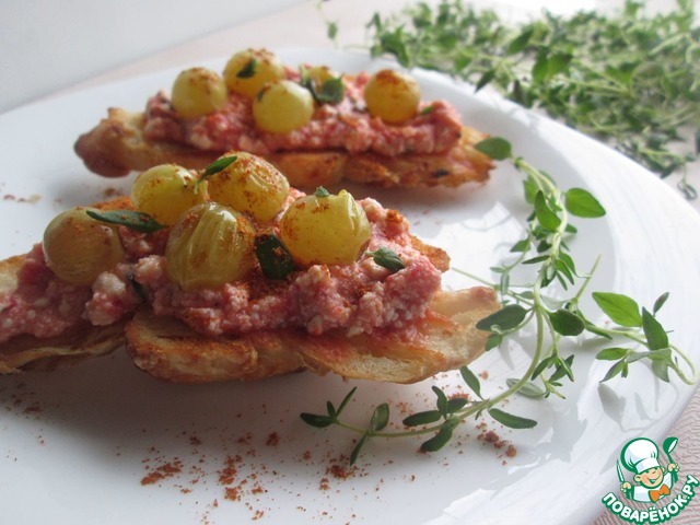 Рецепт «Брускетта с творожным сыром и виноградом»: