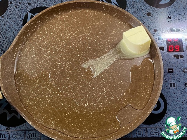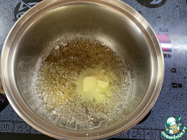 Растопите на сковороде сливочное масло и затем добавьте растительное.