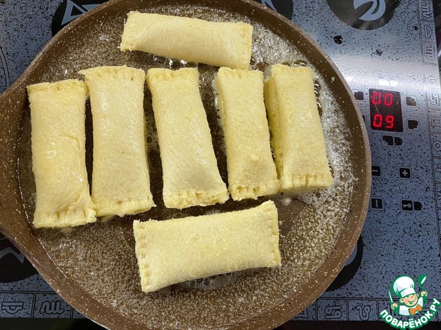 Каждый пирожок обмакните в яично - молочную смесь и обжарьте со всех сторон. Готовые пирожки выложите на бумажное полотенце.