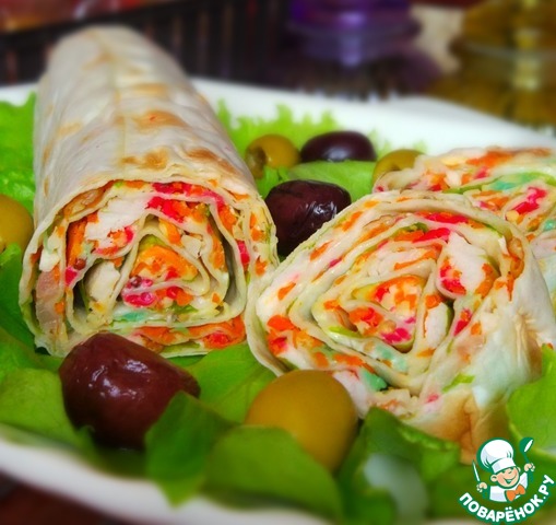 Рецепт «Рулет из лаваша с сыром и курицей»: