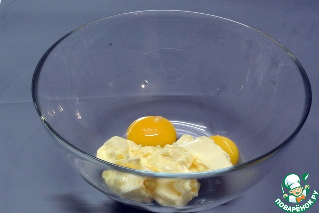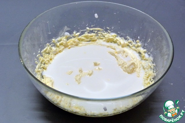 Тщательно перемешать. Всыпать муку и разрыхлитель. Взбить.