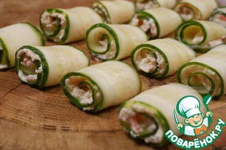 Рецепт «Рулетики из кабачков с сырной начинкой»: