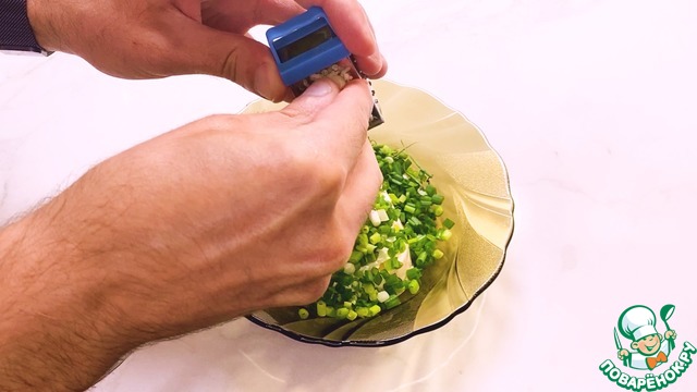 Хорошенько перемешиваем начинку и отправляем в холодильник на 10 минут.