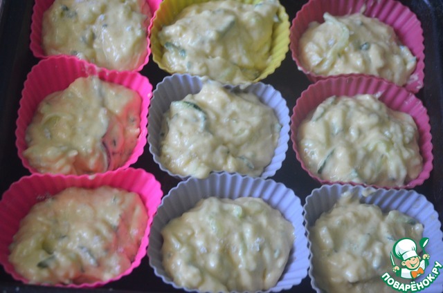 Тесто разложите по подготовленным формочкам для маффины, смазанный маслом. Сверху посыпьте крупной солью.