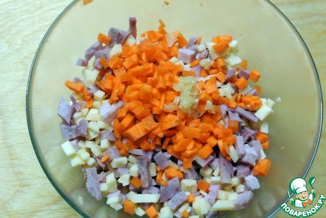 Добавить мелко нарезанную и слегка обжаренную морковь.