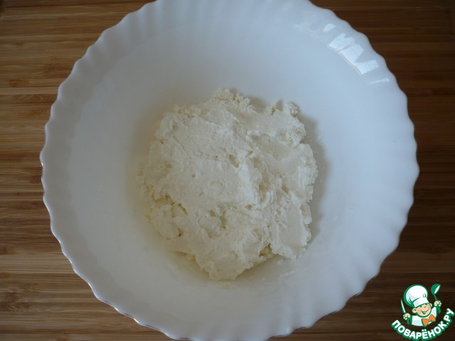 Берем 400 грамм отвешенного йогурта (йогурт нужно отвесить, чтобы стекла лишняя жидкость. Я отвесила его в марле, он был готов через 4 часа) и выложить в миску.