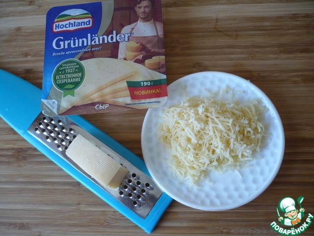 Полутвердый сыр Грюнландер ТМ "Hochland" натрите на мелкой терке.