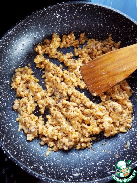 Добавить булгур, паприку и сыр, подсолить начинку.