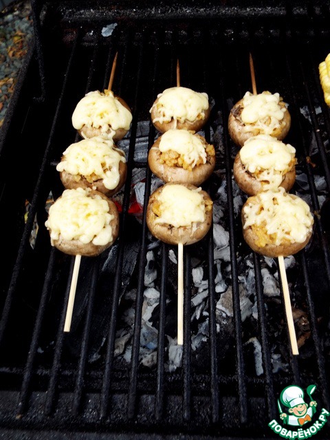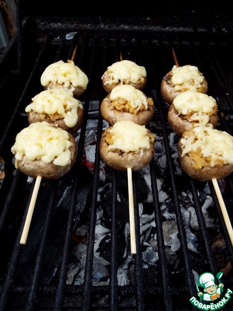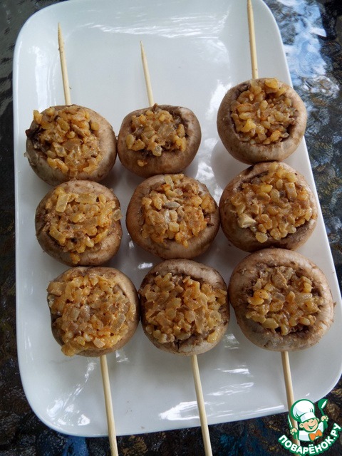 Рецепт «Шашлычки из фаршированных шампиньонов»: