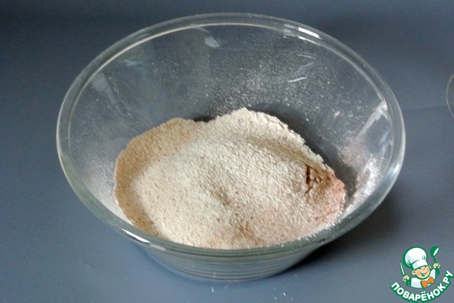 К овсяной муке добавить заменитель сахара, какао, разрыхлитель, ванильный сахар.