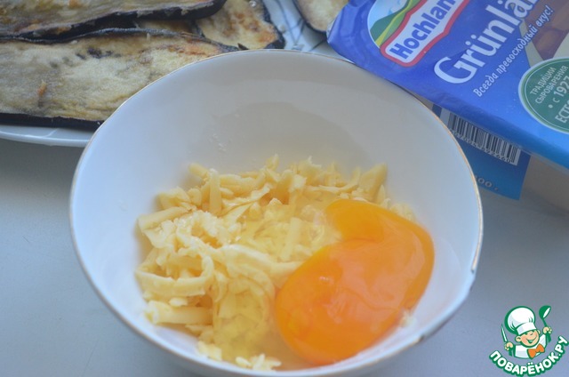 Для начинки сыр натереть на крупной терке, добавить яйцо, перемешать.