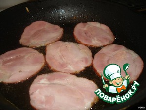 Ломтики ветчины также обжарить на масле.