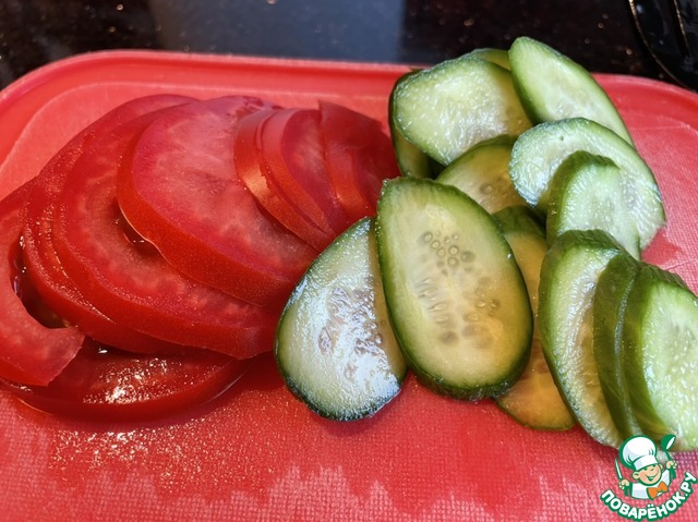 Затем ветчину (ветчину можно заменить красной рыбкой холодного копчения, тоже очень вкусно)…