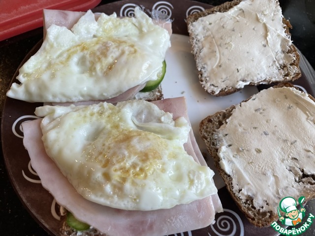 На разогретой сковороде с растительным маслом сначала пожарим яйца по одному: разбиваем яйцо, и жарим как глазунью, затем аккуратно переворачиваем, и снимаем с огня, чтобы желток внутри получился жидкий.