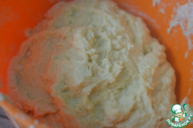 Сливочное масло растопите, остудите. В миску просейте муку, добавьте соль, сахар и дрожжи, перемешайте. Влейте тёплое молоко, растопленное масло и вбейте 2 яйца. Замесите тесто. Оно будет очень мягкое и эластичное.