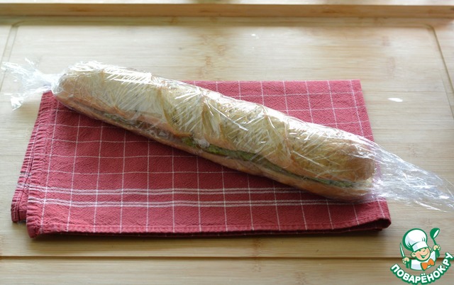 Рецепт «Омлетный рулет с горбушей в багете»: