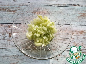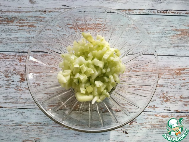 Нарезать огурец мелкими кубиками. (Я срезала кожицу).