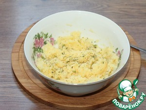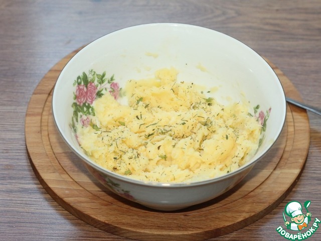 4. Посыпать пюре сухой приправой (лук, чеснок, зелень,..) и перемешать.