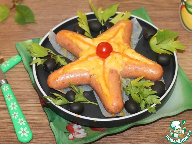 Вкусные сосиски и пряное картофельное пюре, легко запекаются в духовке. Блюдо очень вкусное и сытное, для всей семьи, особенно ее оценят дети, т. к. блюдо приготовлено в виде звездочки.