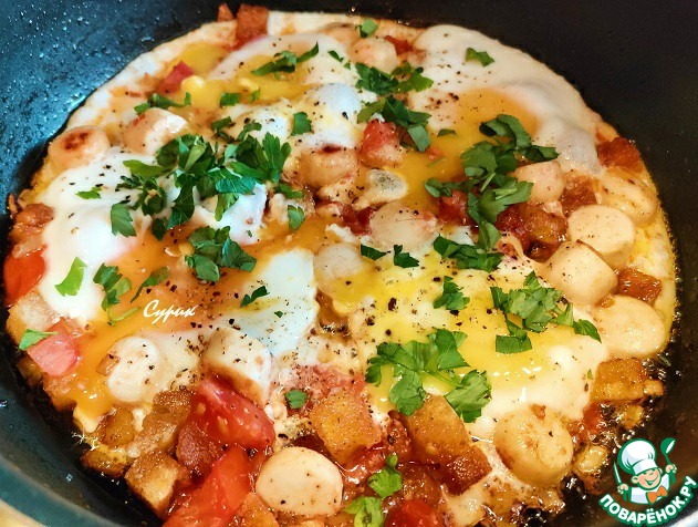 Ингредиенты для «Омлет с сосисками и гренками»: