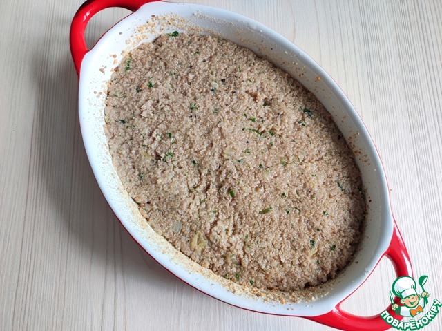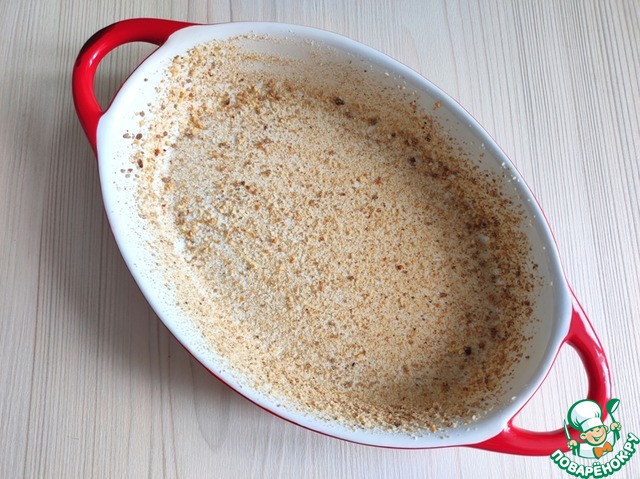 Форму для запекания смазать сливочным маслом, присыпать панировочными сухарями