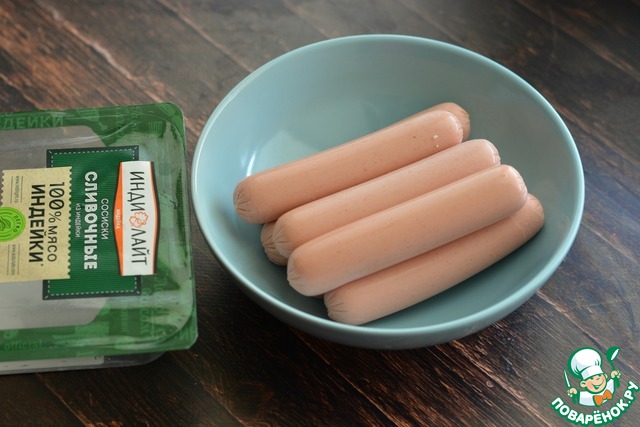 Для приготовления выбирайте качественные сосиски, чтобы они не развалились при приготовлении. Мне очень нравятся Сливочные от "Индилайт"