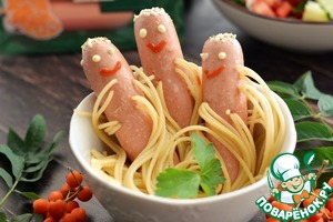 Рецепт «"Осьминожки" из сосисок и спагетти»: