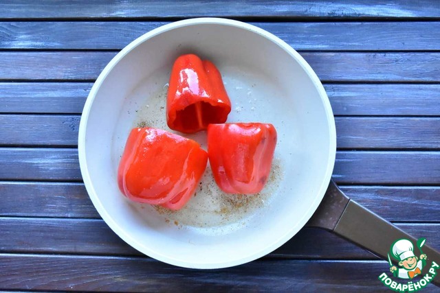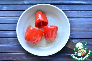 В сковороде разогреваю сливочное и оливковое масло и обжариваю перцы со всех сторон по 30 сек. -