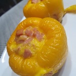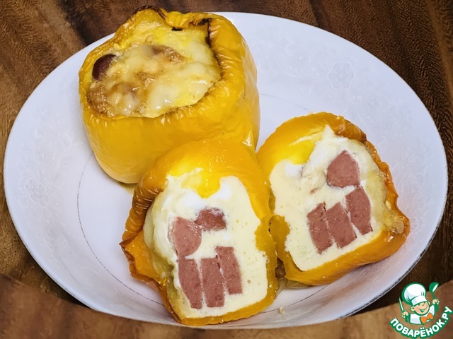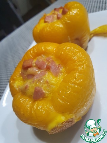 Через 15 минут убираю фольгу и запекаю еще 5 минут, чтобы начинка внутри полностью приготовилась. В каждый перец, поверх начинки добавляю по одному, заранее отложенному желтку и держу в духовке еще 1 минуту.