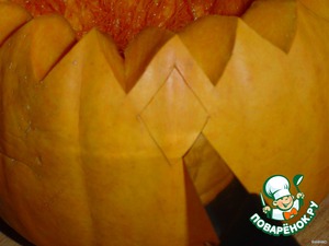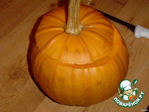 1. Сначала разделите тыкву на две части - основную и крышку.