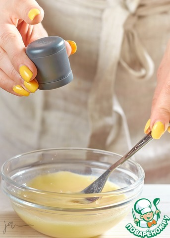 Смешать два яйца с небольшим количеством молока. Посолить и поперчить.