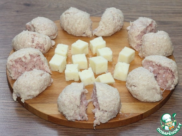 8. Достаем охлажденные крокеты и разделяем каждый на 2 части. Сыр режем на 12 частей.
