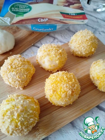 Аккуратно запакуйте сыр внутри лепёшки и сформуйте небольшие шарики с начинкой.