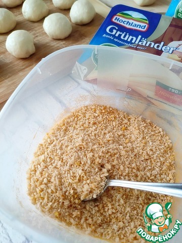 Каждую булочку сбрызните из пульверизатора водой (можно водкой) и обваляйте их в сухарях.