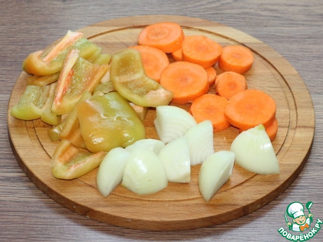 2. Очищаем овощи и крупно нарезаем.