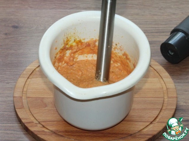 7. Измельчаем продукты блендером.