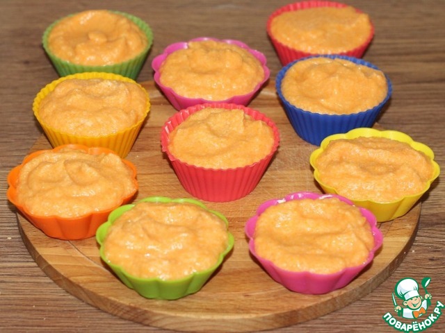 10. Раскладываем массу по формочкам и ставим на противень с водой.