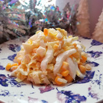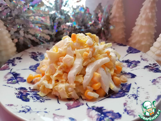 пекинскую (китайскую) капусту освобождаем от верхних листьев, промываем и стряхиваем воду. Мелко шинкуем и в тазик, туда же натираем на крупной терке яблоко и добавляем кукурузу.
