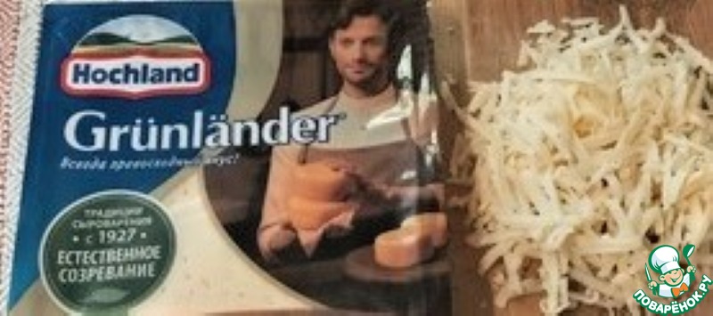 Сыр ТМ "Hochland" Грюнландер я натерла на крупной тёрке.