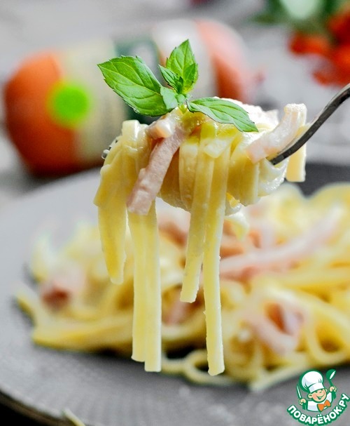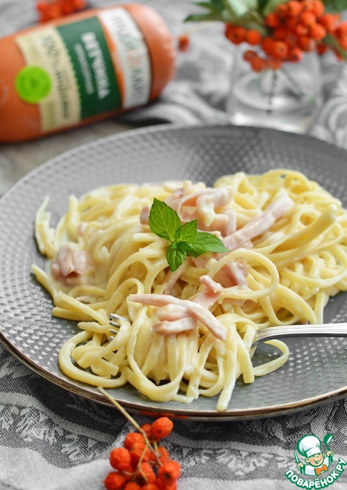 Рецепт «Паста лингвини с ветчиной и кальмарами»: