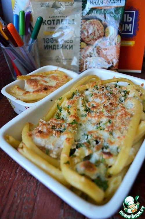 Любимая детская еда - макароны, сыр, котлетки... Объединив это всё в горячее, запечём в духовке до румяной корочки, кстати, дети это тоже очень любят. Котлеты из индейки от ТМ ИНДИЛАЙТ - отличный полуфабрикат, нам осталось только разогреть, это ли не здорово в нашей бесконечной суете, рекомендую.